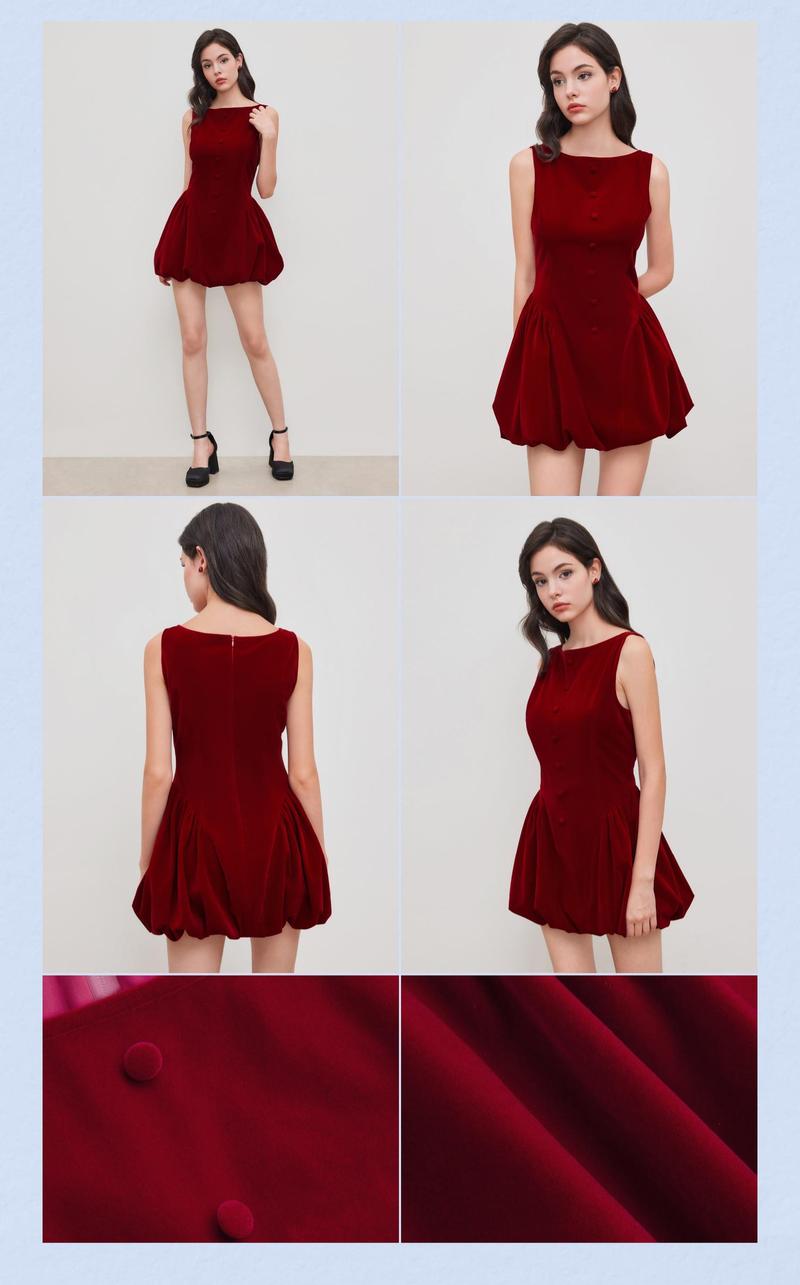 Cider [2 Colors, Size 0-26] Velvet Boat Neck Ruffle Bubble Hem Mini Dress